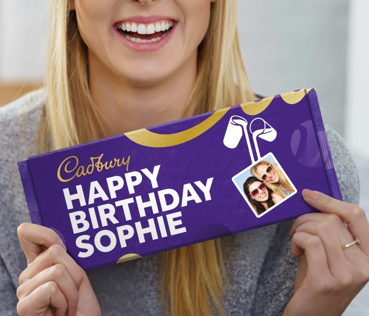 Personalised chocolate makes everyone smile. Choose one of our classic Cadbury Dairy Milk bars or a Cadbury Milk Tray Box, and add a name, or a little message. Fun to give and easy to order.